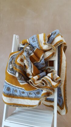The simple crochet motifs and bands of crochet with careful choice of colour makes this stunning throw a lovely crochet project to work. The yarn is a DK yarn and I used mainly bonus yarns. Any DK yarn of your choice will work, just check your tension. this is a pattern for intermediate crocheters.
