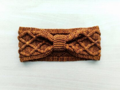 The headband is worked back and forth. The cast on and cast off edges of the headband are sewn using mattress stitch. The strap for the central knot is knitted separately and sewn across the headband with mattress stitch.