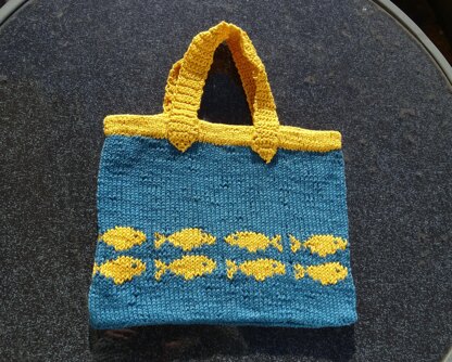 This little purse is worked in rounds from the bottom to the top. It has two crochet handles and a snap for closure. Most of the pattern is written; the stranded part is charted only. The crochet parts are written using American crochet terms.
