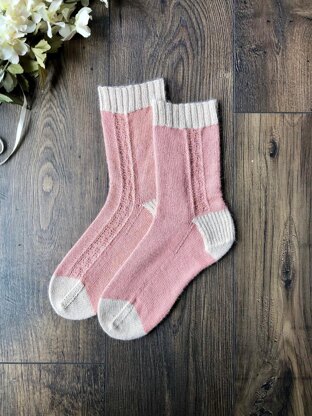 Good Intentions is simple yet elegant pattern with a twist. Primarily knit in stockinette, these socks includes a 10-stitch panel running down the front and back of each sock containing messages knit in binary code. Choose instructions for 1 of 4 pre-drafted messages - love, joy, peace, hope - or create your own. This pattern also included instructions and charts for the entire English alphabet in binary code.