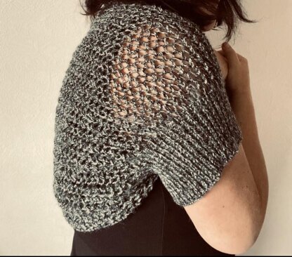 Goth Mesh Bolero/Cardigan knitting pattern. Can be made in all sizes. Stylecraft Special Double Knit yarn 1 to 2 x 100g balls. The model is stitched using shade 1128 in the colourway Charcoal. Can be made into long sleeves. Uses 4mm and 6mm knitting needles.