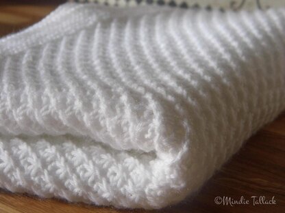 The sample blanket above is in traditional white but knitted in a semi-solid or multicoloured yarn it would look just as lovely as the raised stitch pattern catches the light and adds interesting shadows.