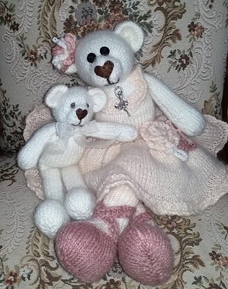 This delightful dressed bear is approx. 17 inches high and is suitable for intermediate knitters. She is worked flat and seamed