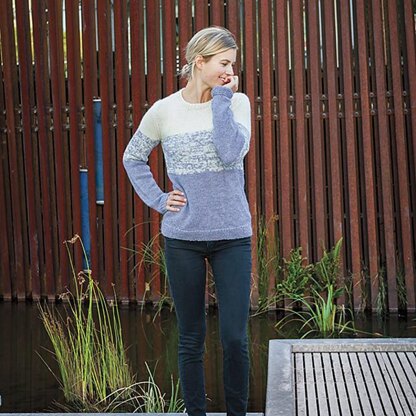 The Gradient Pullover is worked flat in pieces from the bottom up, with a set in sleeve. Yarn is held double throughout, changing colors one strand at a time for a gradient effect.