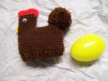 This is an easy to knit egg cover in the shape of a chicken. The stitches used are knit and purl. The bottom is ribbed to fit around an egg, and the rest of the body is garter stitch (knit every stitch). It takes a little knowledge of crochet to make the beak and comb parts. I made mine using worsted weight yarn and a plastic Easter egg. The size can be varied by the yarn weight and knitting needle size. This was from a chicken that my Grandmother gave me for Easter when I was younger. I asked for the pattern but she didn't have it, so I counted and experimented and came up with a similar version of my own.