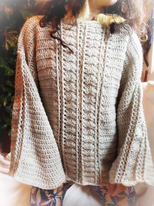 Grandmother Moon sweater features beautiful shell stitch which along the middle part of the front, back and sleeves.