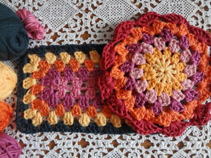Yarn and hook: DK yarn and a 4 mm hook (UK 8/ US F) for the circle and sport yarn of your choice (I love working with Tango and Phil Cotton 3) and a 3 mm hook (UK 11/ US D) for the rectangle. The best effect is achieved by using more colors /shades of the same color. Mind that you can use whatever yarn size/weight (and relevant hook for that weight) you have at hand; that will only influence the size of your circle or rectangle – hence smaller weights of yarn will yield smaller circles/rectangles, heavier weights will produce bigger/larger ones.