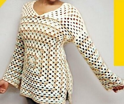 This is is not your granny’s sweater. The cozy sweater is simple enough for anyone to follow. If you always wanted to venture into crochet top patterns then this is for you. The pattern is for an oversize V neck granny square sweater that can be made in any worsted weight yarn. The pattern is written using 3 colors, but you can change colors at any point or keep it all one color. This is an easy to intermediate pattern. Stitch instructions and some instructional photos are included. This is written in US crochet terminology.