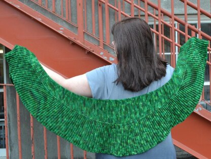 Double Garter stitch is a classic stitch pattern that gives a 3-D pleated look. Worked sideways, the shawl is a big crescent. It incorporates Double Garter to give a rich texture to the sweeping edge.