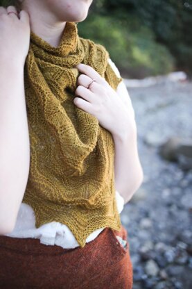 This shawl is an absolute pleasure to wear and looks great on everyone. The little textural waves let yarns catch the light and gives it a lot of depth. The simple no-lace/lace-style repeat is easy to memorize but keeps the knitting interesting.