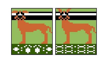 Another pattern request. A great dane. The pattern includes two slightly different charts. One dog has the ears up and the other down. You could use it to get a flip book "Daumenkino" effect. But the peeries are really different. The two charts go over 26 stitches each.