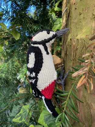 The great spotted woodpecker is one of the UK’s most colourful birds, often found in gardens visiting peanut feeders. This pattern is to make a knitted model woodpecker to be used as a toy or decoration.