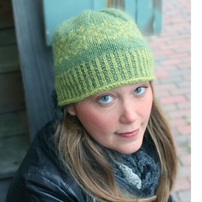 Yarn: Quince & Co Lark, (100% American wool; 134yd [123m] / 50g). MC #130 Split Pea, CC #128 Snap Pea, 1 skein each. Any worsted weight yarn should work. Dive into that stash!