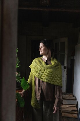 Green Cress is a reversible garter stitch and cable shawl. It uses easy garter stitch on the body and a beautiful cable stitch pattern on the border of the shawl, which can be worn the wrong side out, too.