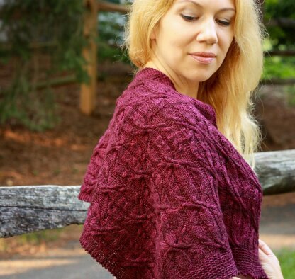When I set out to design a unisex, all-ages neckwear “accessory,” the first thing that came to mind was cables. But when facing the prospect of knitting them into a boring scarf shape, I was less enthusiastic—and so, an asymmetrical shawl was born! Worked from one point outward, the Greenbrier shawl features a repeating cable motif, trimmed with a modified garter stitch pattern along the opposite side, and finished with a fun picot bind-off.