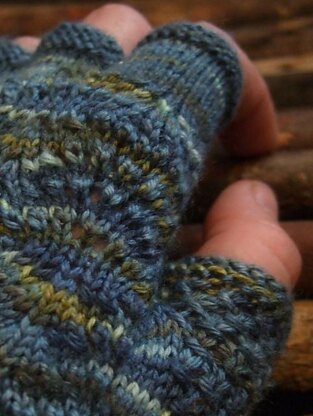 Inspired by the Dark is Rising Sequence by Susan Cooper, this lace cuffed glove design evokes the murky depths of the Cornish coastline wherein the Greenwitch lies. Cuff is knit back-and-forth and then picked up along the side edge for the hand which is knit in-the-round on circular needles using magic loop technique. The back of the hand is textured lace and the generous thumb increase uses a slipped stitch technique to give a crossed mesh appearance. Fingers and thumb are tipless. Pattern is suitable for an experienced knitter. Written and charted.