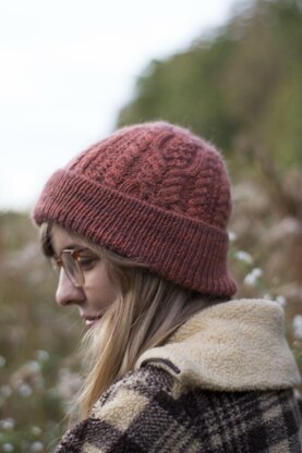 Like its mother, the Gretna Jumper, the Gretna Hat is densely cabled with a touch of eyelets, texture, and soothing ribbed knitting. The meeting of longwool fibers and cables is pretty magical and a bit unexpected. The fabric feels lightweight, and the lustrous quality of the fibers seem to perfectly define each stitch as they cross one another. These are the qualities that make the Gretna hat a lovely project for the cool seasons.