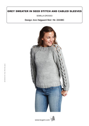 Grey Sweater in Seed Stitch and Cabled Sleeves in BC Garn Semilla Grosso - 2333BC - Downloadable PDF