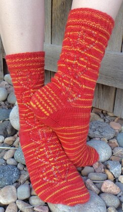 All four Hogwarts House Uniform Socks are designed with similar elements: lace, cables, and slipped stitches. Each pattern is unique, based on the Hogwarts Professor who is the Head of House and the subject that Professor teaches.