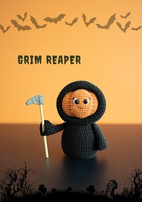 This little Grim Reaper toy is perfect for decorating your house for Halloween! This pattern includes detailed instructions and photos illustrating the process. It is written in English and uses standard American terms.