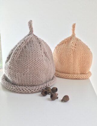 This cute little baby hat is the perfect handmade baby shower gift. Quick and easy to knit, it features a rolled edge, spiral crown pattern and a cute little apple core that can be left straight or knitted longer and knotted.