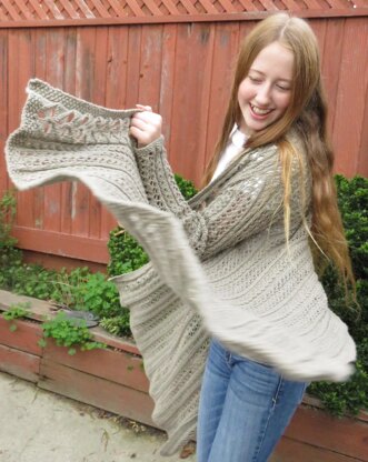 Gynnes is a versatile wrap cardigan with an easy to memorize lace repeat and simple construction. Worn with jeans or as part of a more elegant outfit, Gynnes makes a great transitional garment in spring or fall.