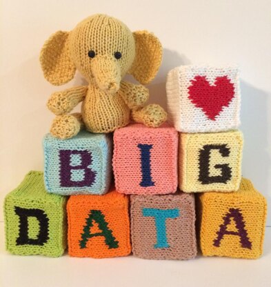 Hadoop is a cute yellow elephant. It was created to help us to solve Big Data problems so Hadoop Loves Big Data. Hadoop elephant is 6" tall. It can sit next to you in your office. It can keep pens or business cards for you. Or it can sit and look at your computer. Knit Cube Toys: A, I, B, G, T, D & heart for your elephant. Cube size is 3.5"x3.5"x3.5". To knit your elephant use Yellow Cotton Yarn because Hadoop is Yellow.