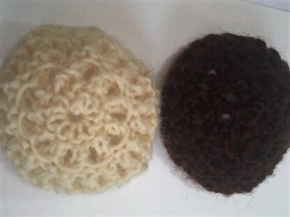I have shown both blonde and brown examples, however, you may knit any colour hair you like.