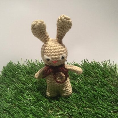 Hansi Hase wird nur aus festen Maschen (FM) und Luftmaschen (LM) mit gelegentlichen Kettmaschen in Spiralrunden gehäkelt.