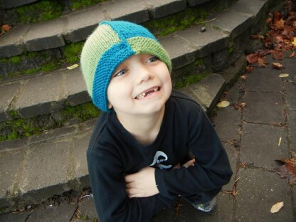 This fun hat was designed by my 5-year-old son Sebastian. (His design drawing is shown at left. He's a natural!)