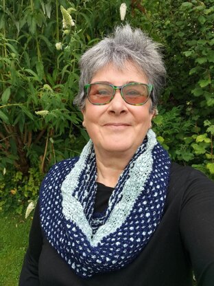 Hallie Cowl - Materials Yarn: Yarn A 1 x 100g/200m King Cole Fashion Aran in shade 3508 Navy Blue (70% acrylic, 30% wool) Yarn B 1 x 100g/250m King Cole Opium in shade 193 Glacier (54% cotton, 42% acrylic, 4% polyamide)