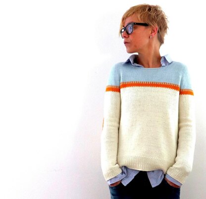 This sweater is worked seamlessly from the top down and uses the contiguous set in sleeves method developed by Susie Myers. Knitting starts with the cast-on of the stitches for the back, the shoulders and some first stitches of the front. You will increase before and after the shoulder stitches on every row until you reach the final cross-back width. From that point increases are done to shape the sleeve caps, at the same time the neck shaping is done by adding stitches to the fronts. Once all shaping is complete, the sleeve stitches are placed on hold, to work the body first top down to the hem. Sleeve stitches are picked up again to work the sleeves in the round top down to the cuffs. Neck finishing is worked last.
