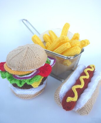 Pattern is for Hamburger, including toppings of lettuce, tomatoes, onion, cheese and thousand island dressing.