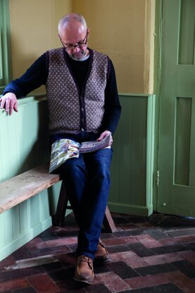 This cosy Fairisle waistcoat (from Martin’s Nordic Knits) is knitted in two colours of Rowan Felted Tweed, with ribbed hem, armholes and buttonbands. It comes in three sizes.