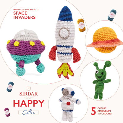 Fly to the moon with Happy Cotton - 12 - Space Invaders by Sirdar. This book will have you creating unique cosmic amigurumi with five fun designs. Cro