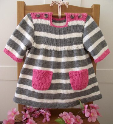 This beautiful baby dress is knit in pieces and sewn together when finished. The pattern contains a folded hem on both the bottom of dress and sleeves. The skirt and sleeves are made using stocking stitch and the bodice is 1x1 ribbing Make happy your baby with Happy Day Baby Dress!