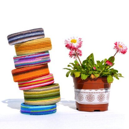 Don’t discard used scotch tape base rings. Find pretty scraps of yarn in your stash and plunge deep into your dreams and slip stitch crochet. Crochet your day and create a Happy Day Bracelet!