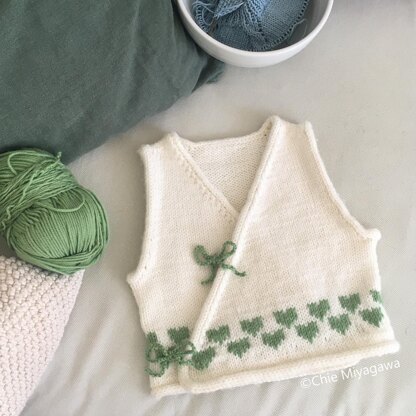 This delicate vest is perfect for layering for the coming seasons. You can pair it with a cotton onesie to add a little more warmth during fall, or layer on top of another sweater for extra warmth during winter. It is worked flat and seamless with i-cord edging for maximum comfort for your baby.