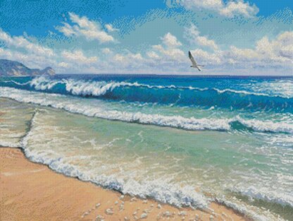 This counted cross stitch pattern of a Beach was created from beautiful Artwork Copyright of Mark Keathley. Only full cross stitches are used in this pattern. It is a black and white symbol pattern. 73 DMC Colours are used.
