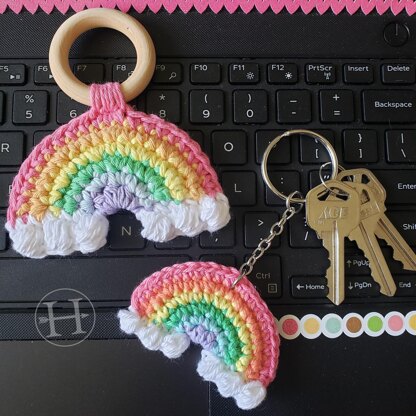 You can turn your Happy Rainbow into a cute keychain, zipper pull, backpack or purse charm, or attach an untreated wooden ring and use cotton yarn for an adorable baby-safe teether. Or attach to a hair tie for another cute accessory!