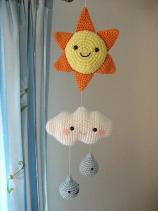 This Pattern set includes instructions to make my original crochet pattern and design- Happy Weather Amigurumi Mobile. The pattern is very simple, working in a spiral, and I have included lots of photos to help you out.