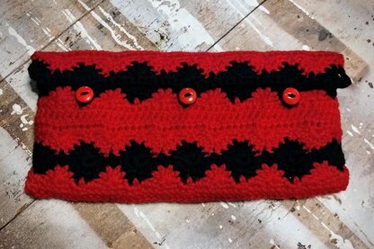 The Harlequin Clutch is a fun crochet project that can be made in any two #4 worsted weight yarns.