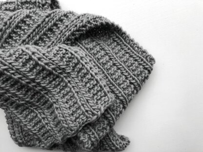 A chunky reversible knit scarf for men and women that can be worn in a variety of lengths. Pattern is for a 5' scarf, but length can easily be increased.