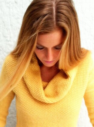 A seed stitch front and a large cowl put a simple, modern twist on a classic pullover.
