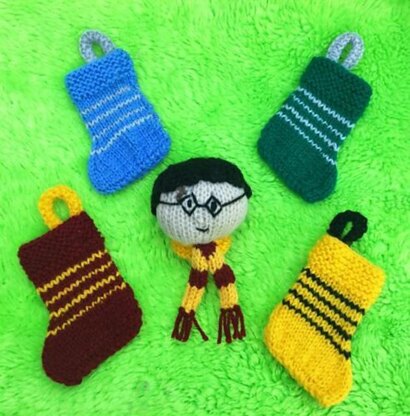 This knitting pattern is for a Harry Potter inspired christmas stocking decorations and Christmas Bauble Decoration.
