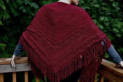 Yarn (Sample used) Cosy Posy Yarn Co, Soft & Cosy; 80% Superwash Merino, 20% Nylon; 2 ply fingering; 400 yds (356.75 m); 3.5 oz (100 g); 3 hanks in Red Velvet (all was used to create shawl with tassels)