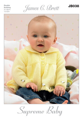 Hat, Blanket, Jacket and Dress in James C. Brett Supreme Baby DK - JB038 est un modèle de Tricot par James C. Brett, disponible au format Dépliant et comprend des instructions en Anglais. Super amusant à réaliser, ce modèle pourrait être votre prochaine œuvre d'art !