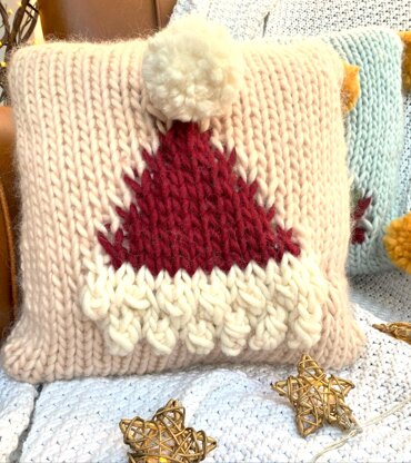 Super cute cushion cover pattern with Santa’s hat motif and a fluffy pom pom. This petite cushion is perfect for adding a festive touch, and the bobble stitch creates cosy texture. Pair with my small elf hat cushion cover for maximum joy!