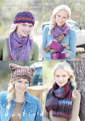 Hats, Scarf and Wristwarmers in Hayfield Colour Rich Chunky - 7293 - Downloadable PDF