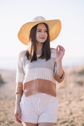 This pullover is a summer staple, made with blocks of neutral colors that pair beautifully with just the right amount of lace. Knit with 100 percent pima cotton yarn, this loose-fitting, textured top offers an effortless drape for easy wear on a warm day.